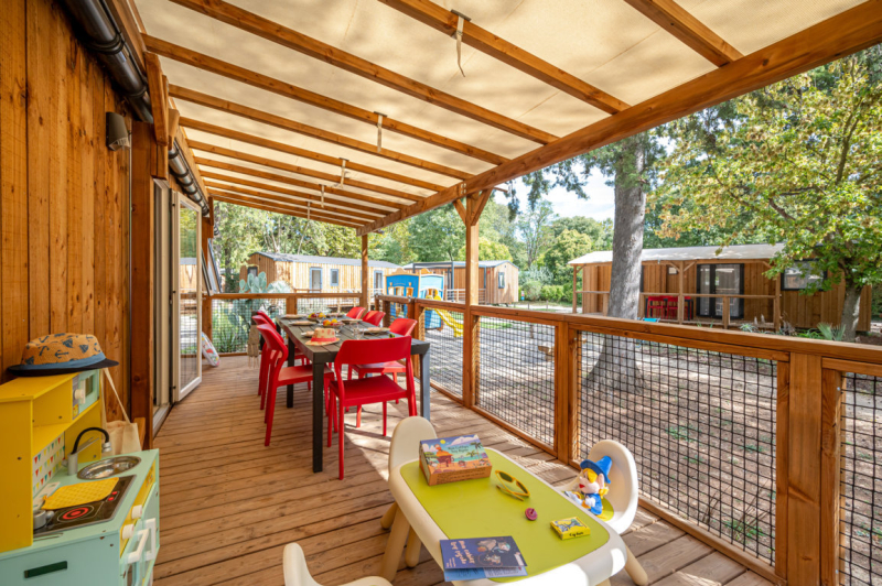 Por lo tanto, le hemos construido un alojamiento a su gusto. Un gran mobil-home, espacioso, con mucha claridad y con las mejores prestaciones para un buen descanso.