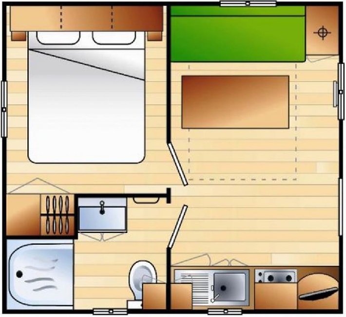 Por lo tanto, le hemos construido un alojamiento a su gusto.  Un gran mobil-home, espacioso, con mucha claridad y con las mejores prestaciones para un buen descanso.