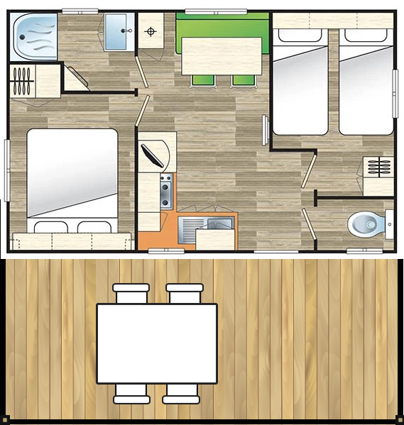 Salón con 2 camas individuales (1 cama cajón) y 1 cama doble en el entresuelo