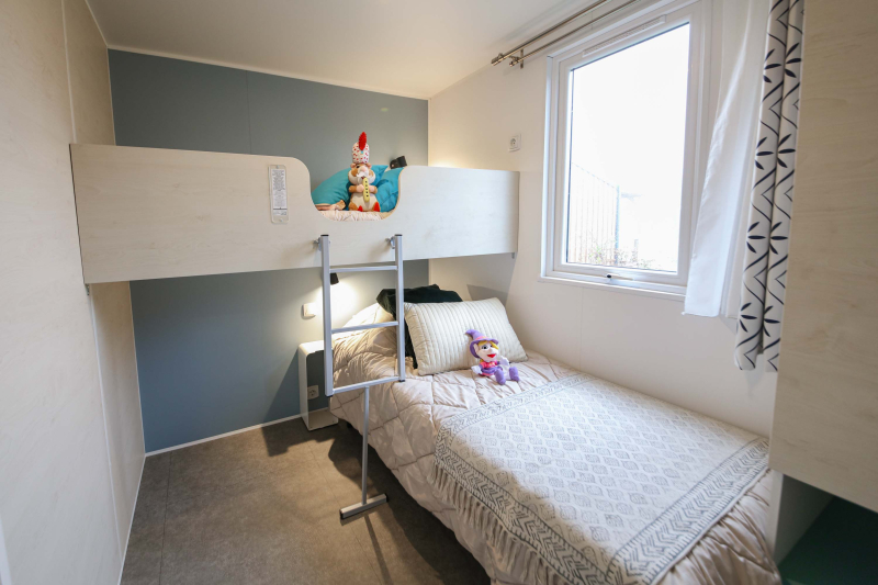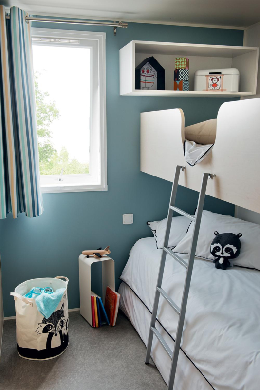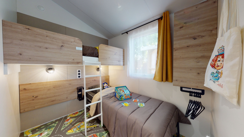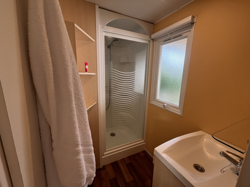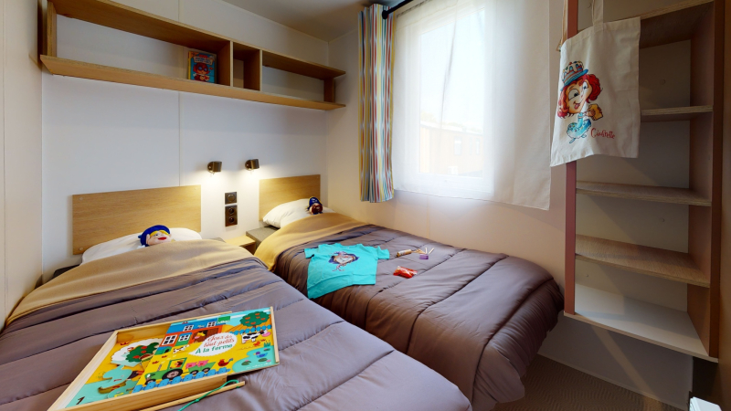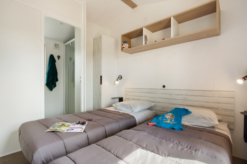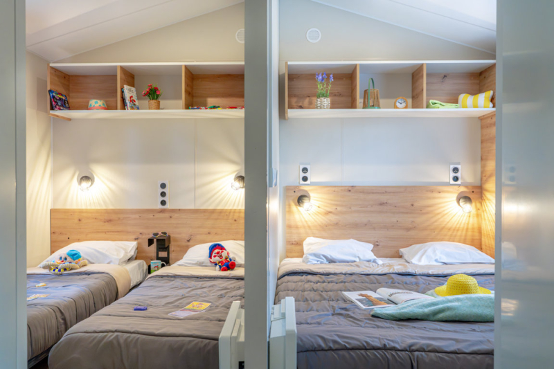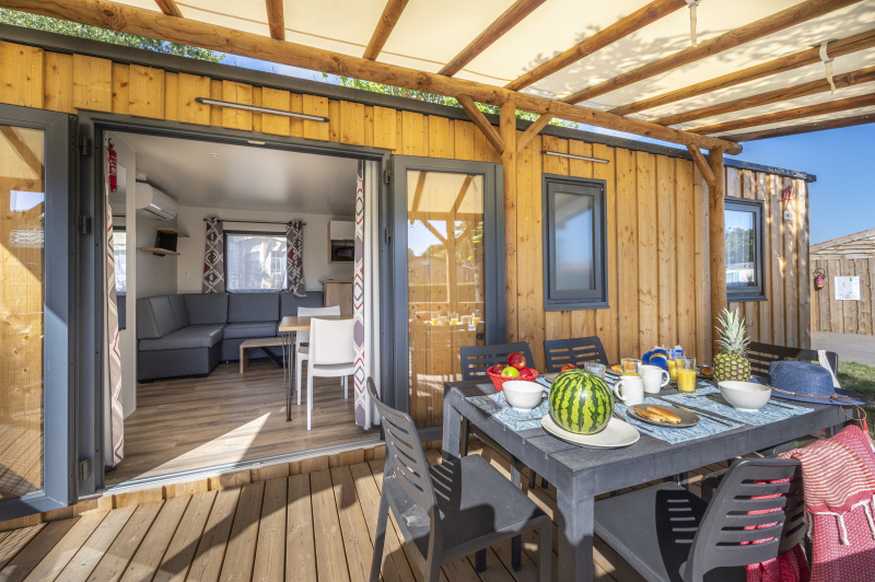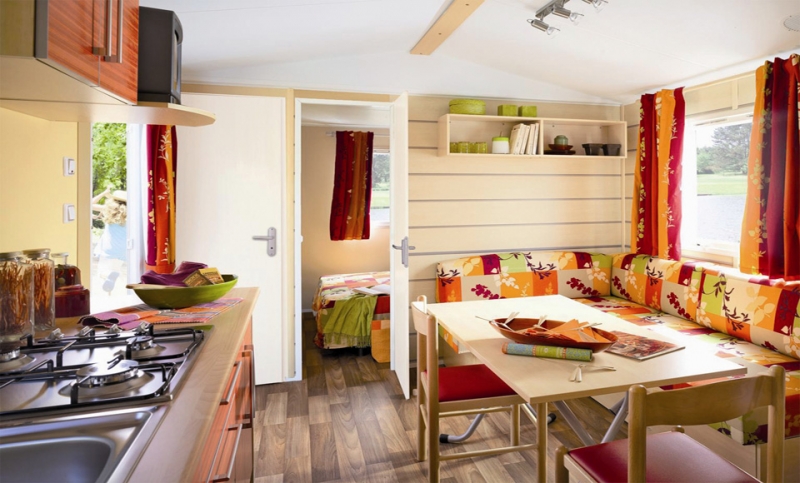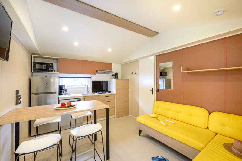 Por lo tanto, le hemos construido un alojamiento a su gusto. Un gran mobil-home, espacioso, con mucha claridad y con las mejores prestaciones para un buen descanso.