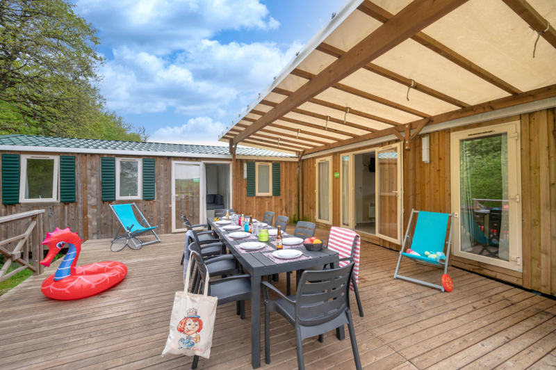 El Top Presta Tribu+ está diseñado para grandes familias que necesitan un montón de espacio ! Es un gran lugar de 170 m² que se compone de 2 casas móviles que comparten una gran terraza !