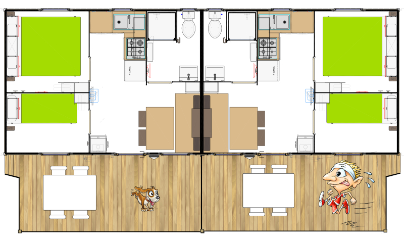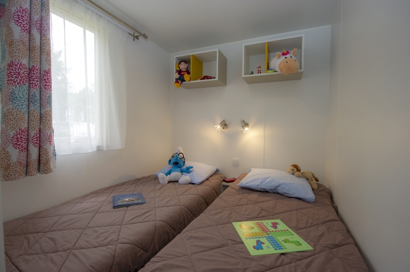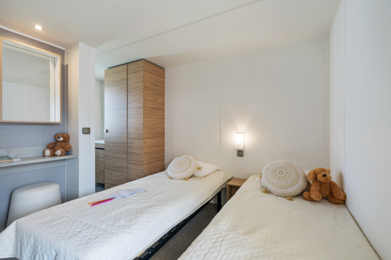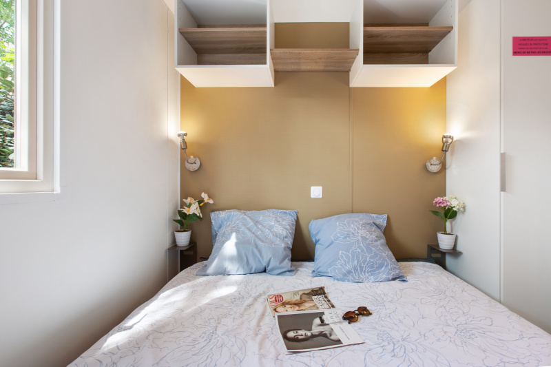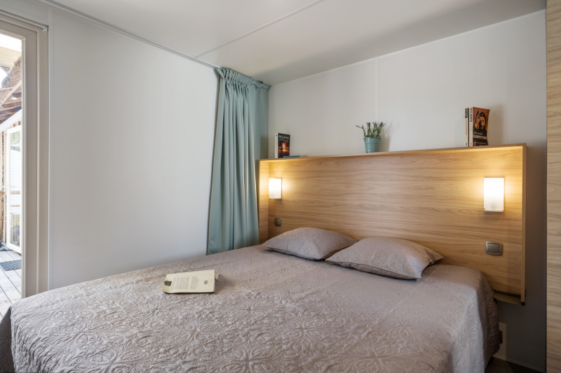 Por lo tanto, le hemos construido un alojamiento a su gusto. Un gran mobil-home, espacioso, con mucha claridad y con las mejores prestaciones para un buen descanso.