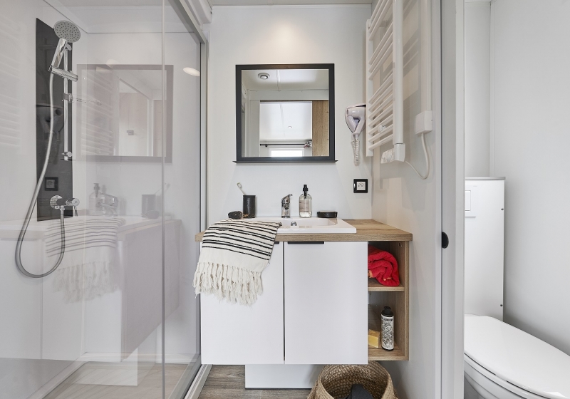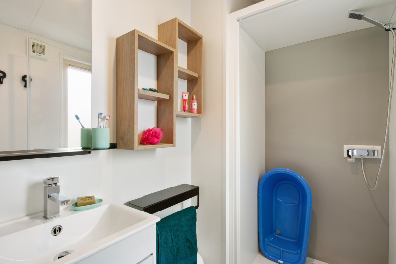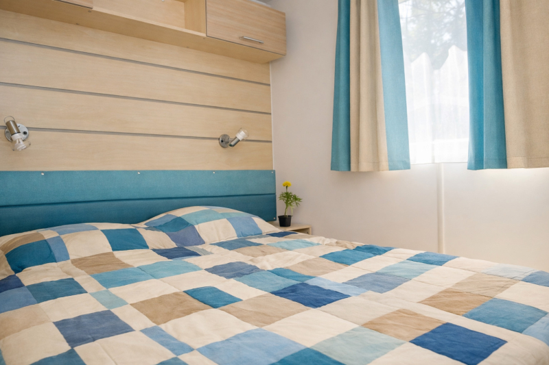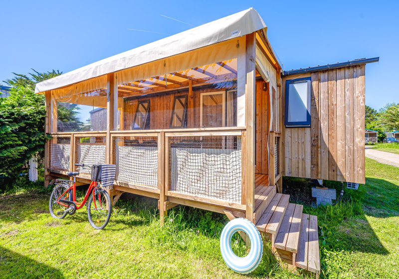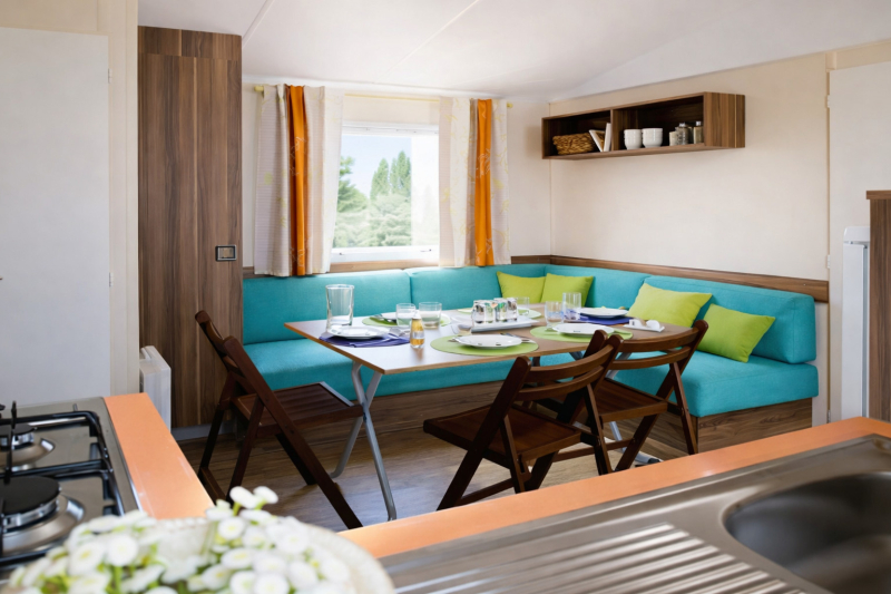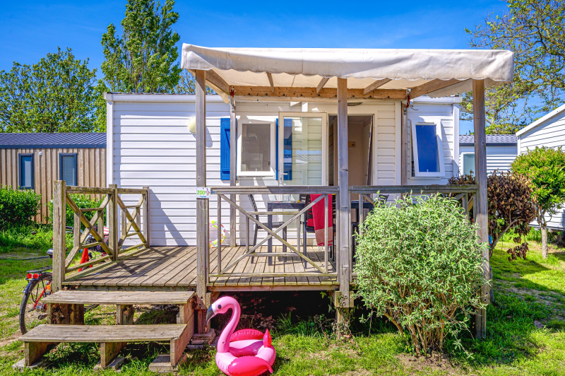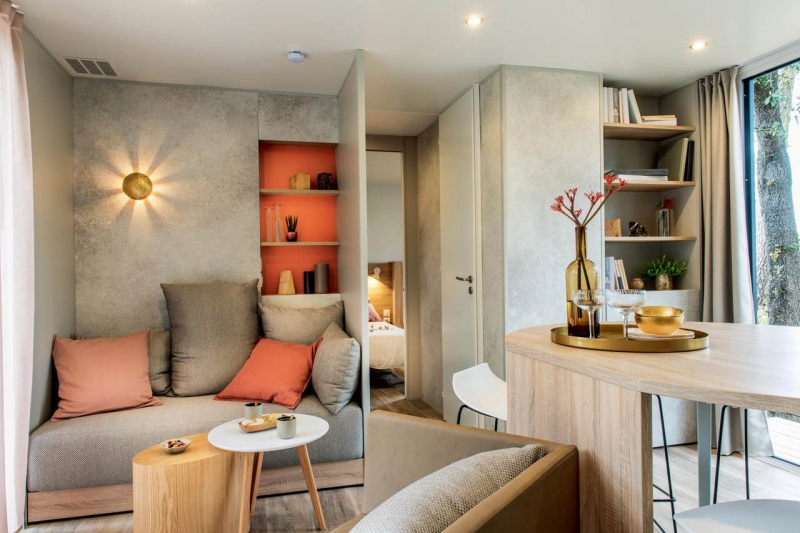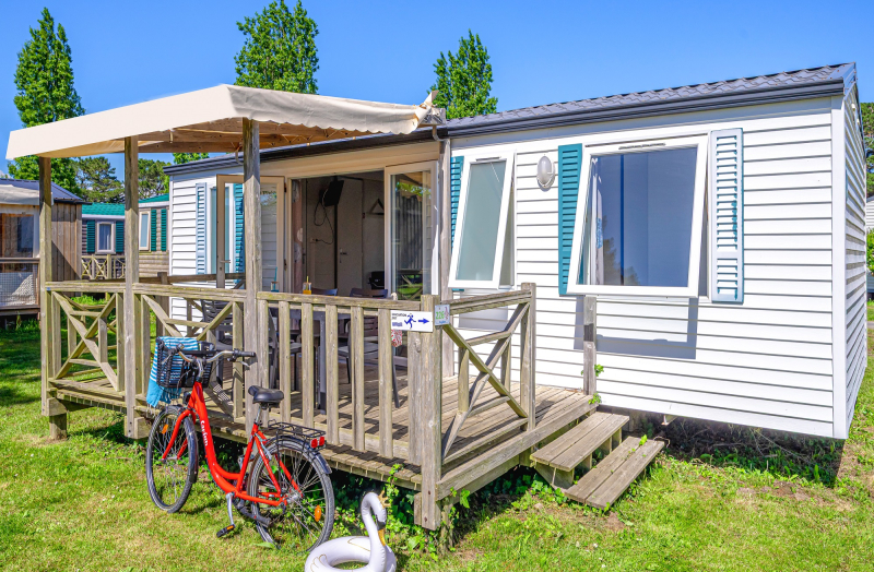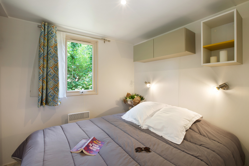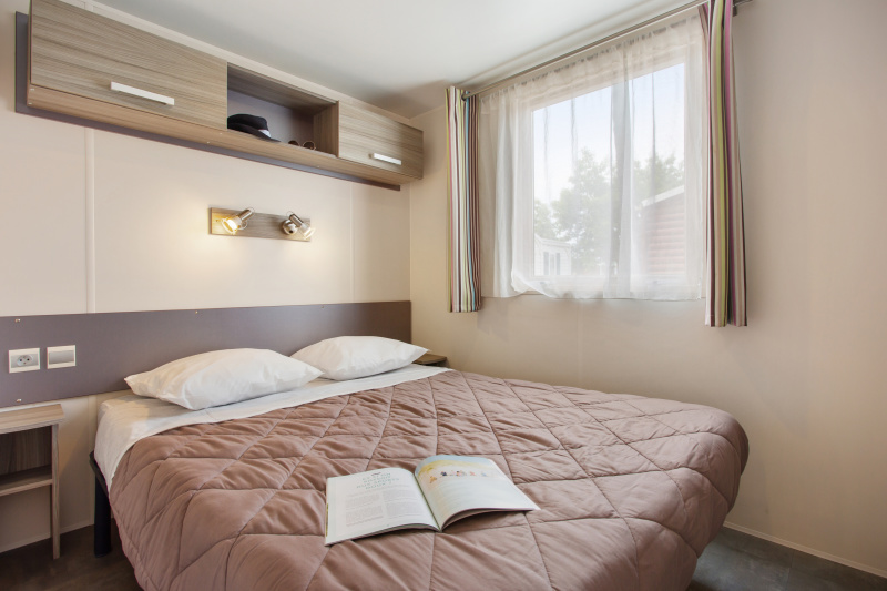 Por lo tanto, le hemos construido un alojamiento a su gusto. Un gran mobil-home, espacioso, con mucha claridad y con las mejores prestaciones para un buen descanso.