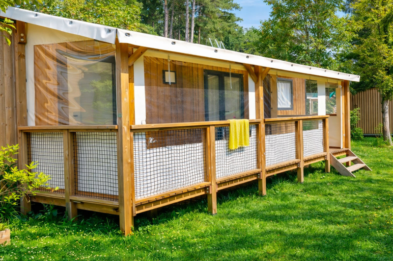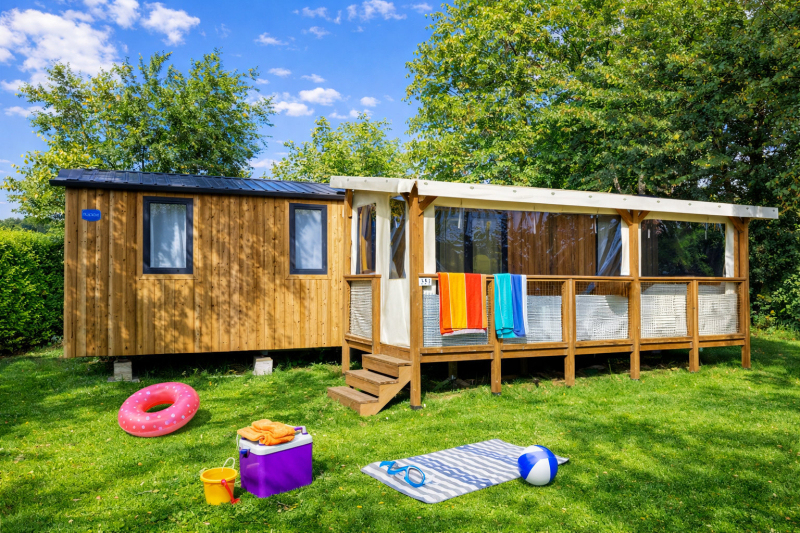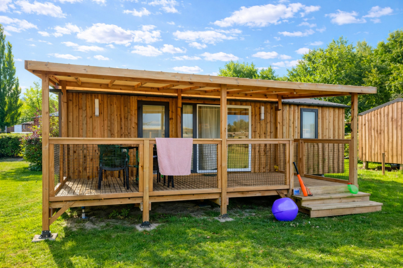 Por lo tanto, le hemos construido un alojamiento a su gusto. Un gran mobil-home, espacioso, con mucha claridad y con las mejores prestaciones para un buen descanso.