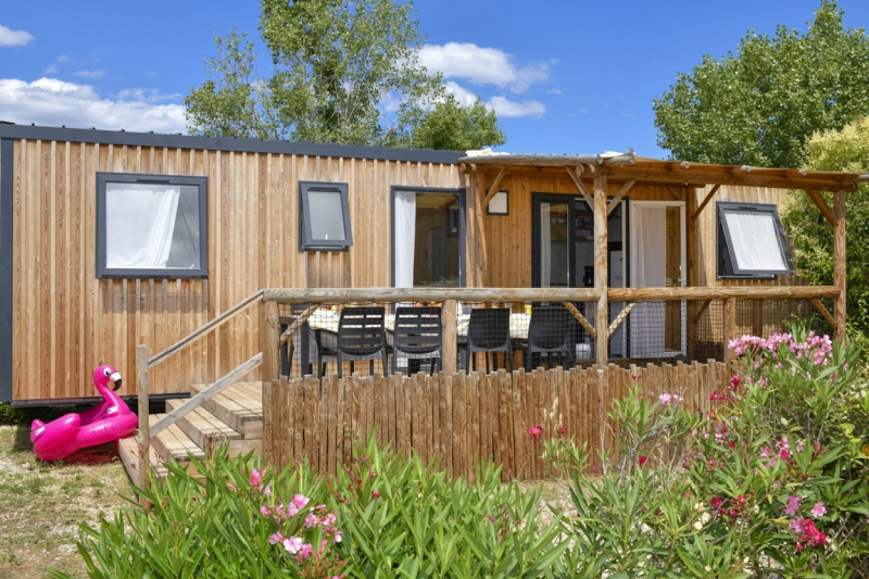 Por lo tanto, le hemos construido un alojamiento a su gusto. Un gran mobil-home, espacioso, con mucha claridad y con las mejores prestaciones para un buen descanso.