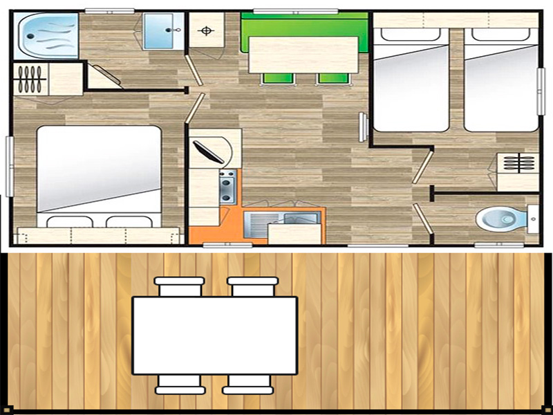 - 1 habitación : 3 camas simples cuyo 1 litera (70)
