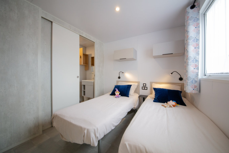 Por lo tanto, le hemos construido un alojamiento a su gusto. Un gran mobil-home, espacioso, con mucha claridad y con las mejores prestaciones para un buen descanso.