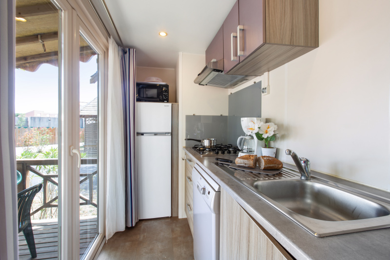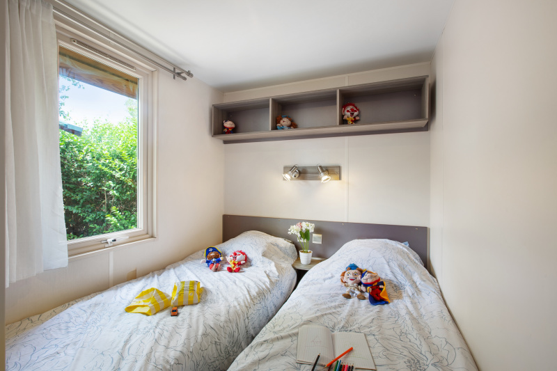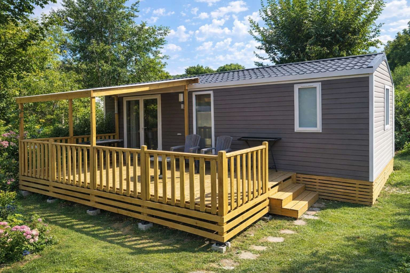 Por lo tanto, le hemos construido un alojamiento a su gusto. Un gran mobil-home, espacioso, con mucha claridad y con las mejores prestaciones para un buen descanso.