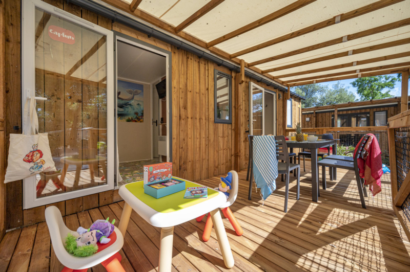El tribu Top Presta está diseñado especialmente para familias numerosas, que necesitan mucho espacio. ¡Es un gran lugar de 170 m² que se compone de 2 mobil homes que comparten una gran terraza !