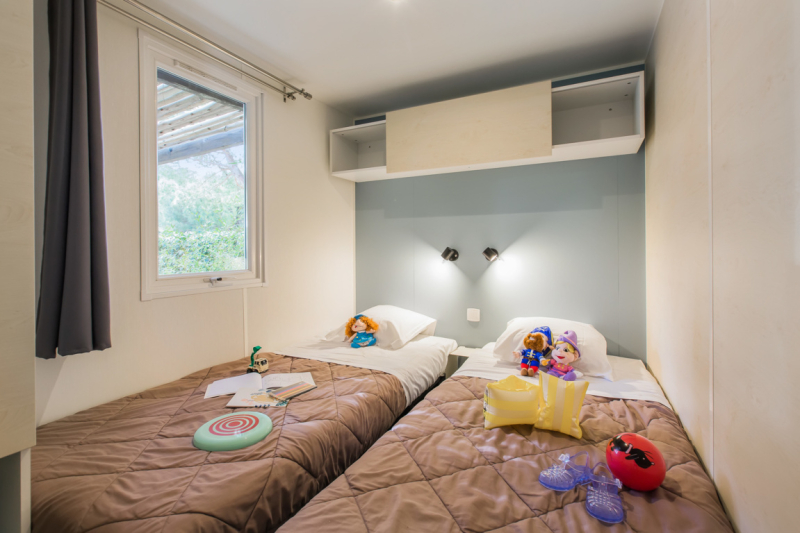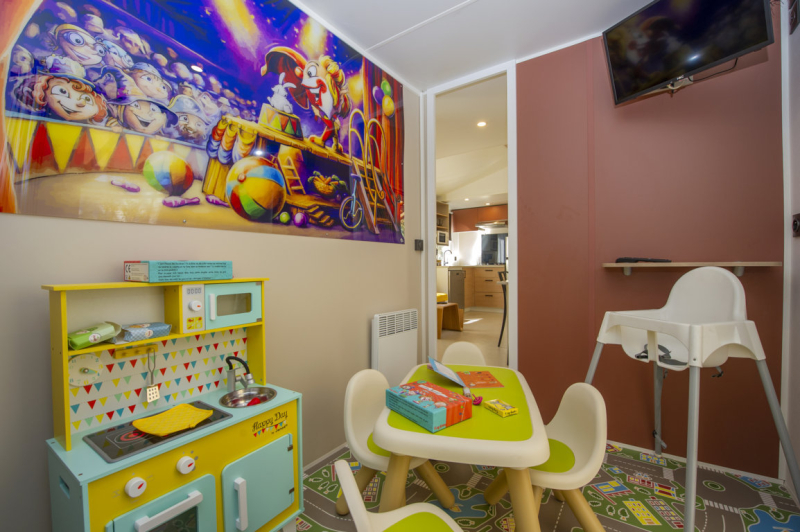 Posibilidad de instalar una cuna en la habitació, principal (alquiler posible en el camping, con un cargo adicional y con reserva previa)