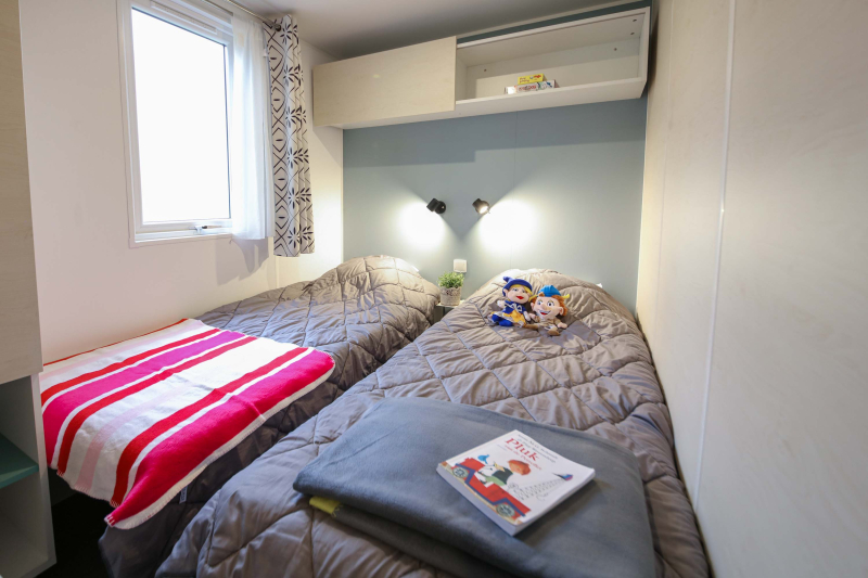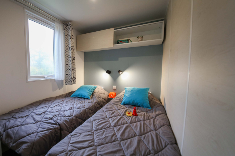 Por lo tanto, le hemos construido un alojamiento a su gusto. Un gran mobil-home, espacioso, con mucha claridad y con las mejores prestaciones para un buen descanso.