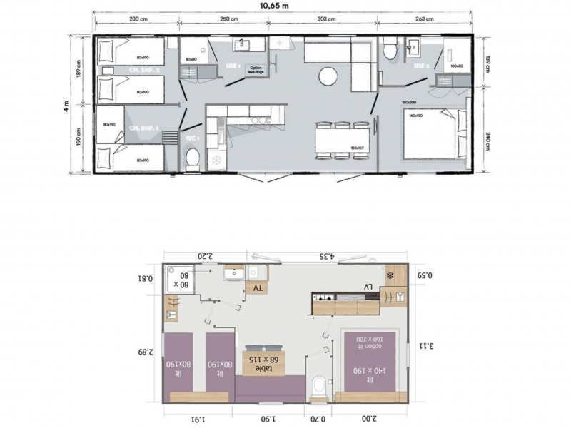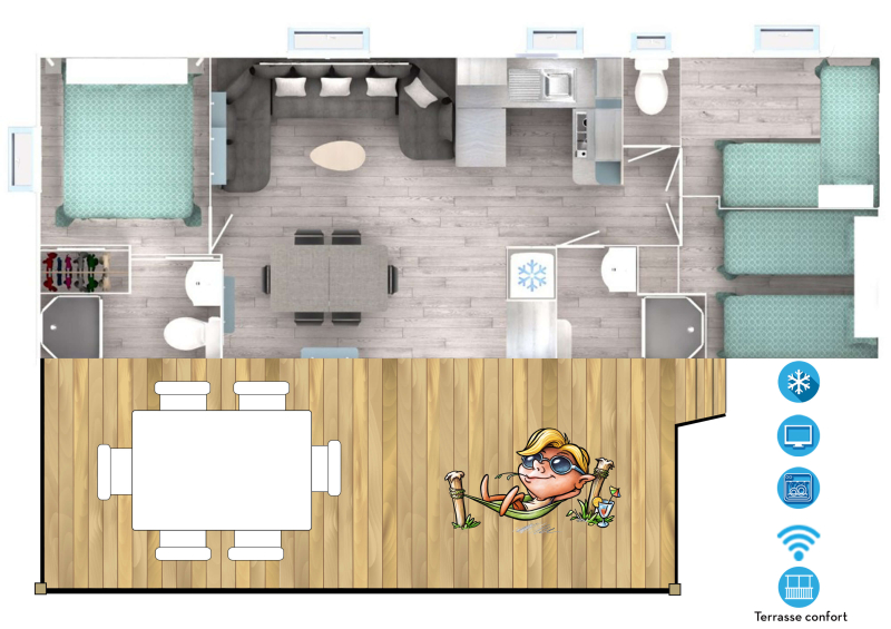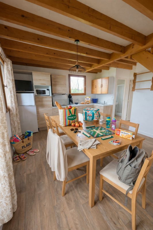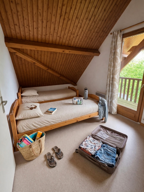 - 2 habitaciones : 1 habitación con cama matrimonio y 1 habitación con 1 litera